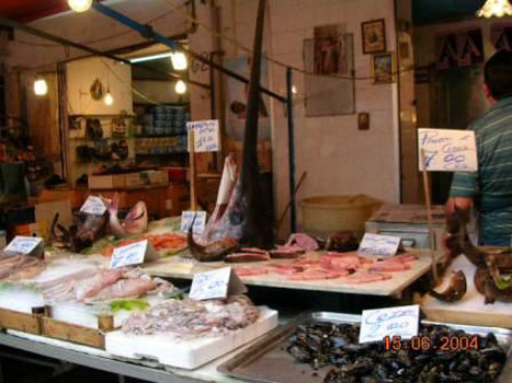 | Sizilien, Markt in Palermo, Vucciria einer der bekanntesten Märkte,muß man sehen, hören, riechen, erleben in seiner Vielfalt / 02